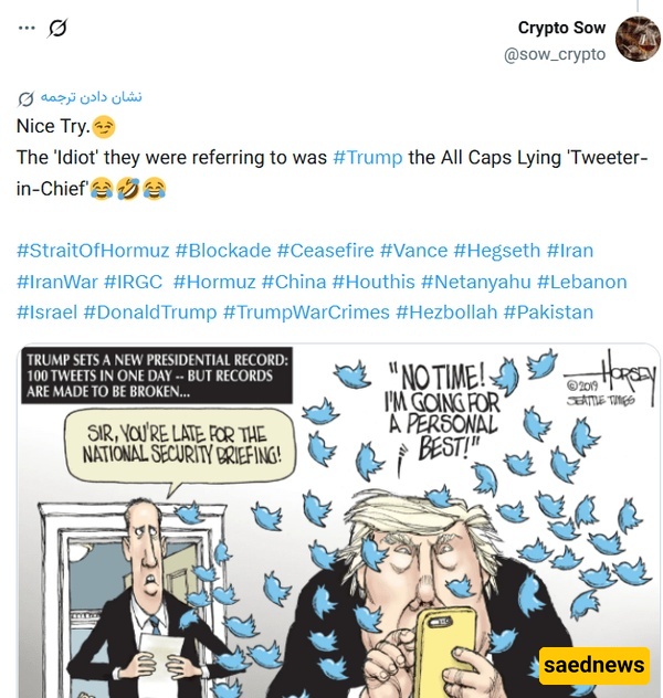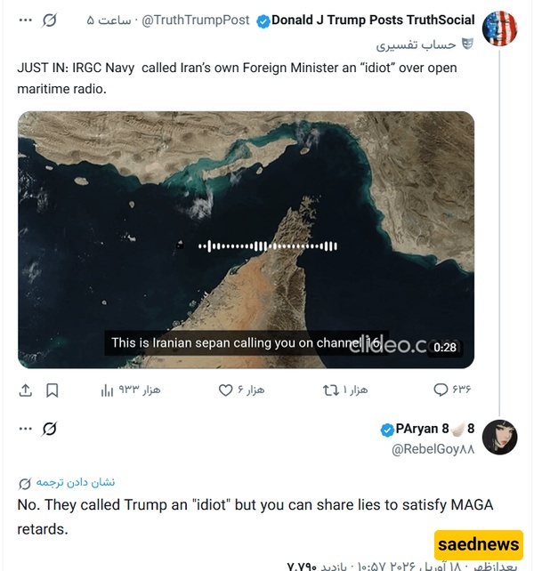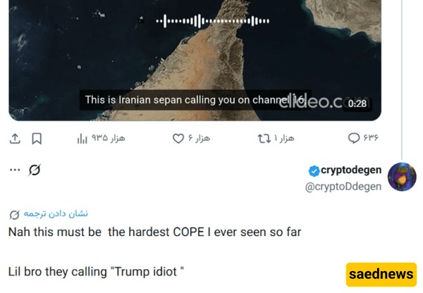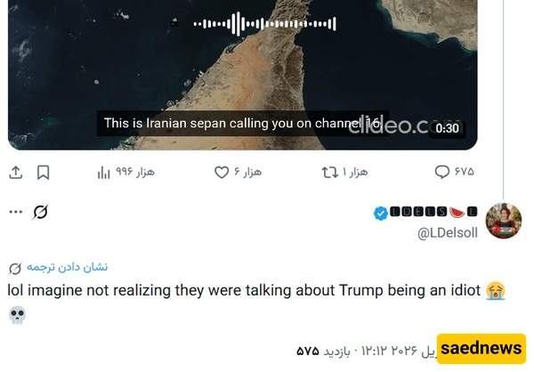 According to the political service of the Saed News website, and citing Fars News Agency, the President of the United States made an unusual attempt on the social media platform X to appropriate a recorded audio message from an Islamic Revolutionary Guard Corps (IRGC) Navy member, but his interpretation was incorrect.