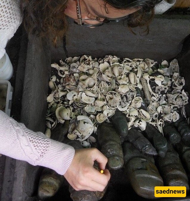Among the finds were also two long rattlesnake-shaped earrings embedded among shells.