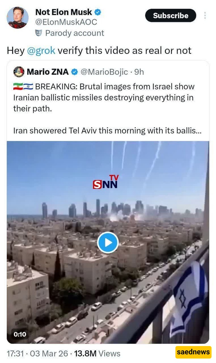 SAEDNEWS: Elon Musk asked the AI Grok about a video of Iran’s “rain rockets” over Tel Aviv, aiming to question its authenticity—but received an unexpected answer. This article examines his reaction and his surprising comments about fleeing to Mars.