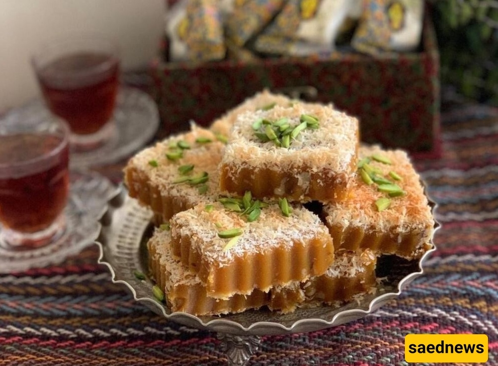 According to the Saed News Cooking Service, Dehin Halva is a highly nutritious and beneficial dessert made with flour, sugar, milk, olive oil, coconut, and date syrup. It can be a delicious dessert during the cold months of the year as well as during the holy month of Ramadan.
