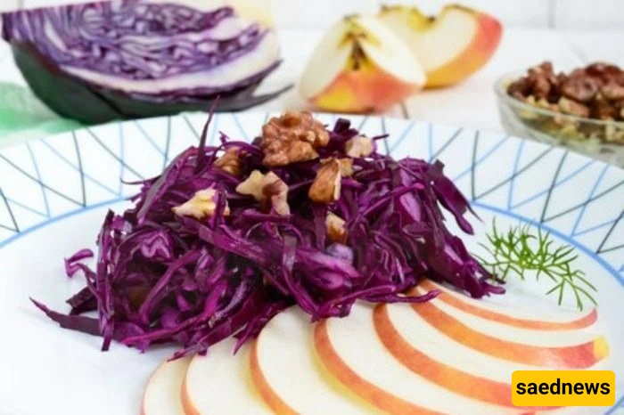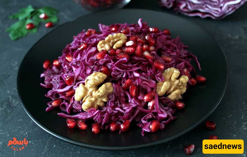According To SAEDNEWS, Pomegranate salad is one of the delicious and elegant Iranian salads, made with a variety of fresh ingredients. It is typically served as an appetizer at parties and special gatherings. Red cabbage and pomegranate salad is also a traditional choice for special occasions such as Yalda Night. Since pomegranates are only available in autumn and winter, this salad is considered seasonal. Below is a step-by-step guide to preparing it.