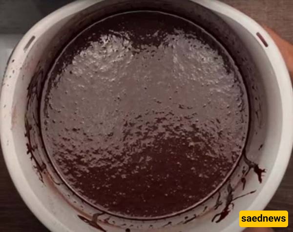 After removing the cake from the oven and while it’s still hot, pour the reserved chocolate batter over it. Let it sit for a few minutes to allow the chocolate to soak into the cake. For better absorption, you can make tiny holes on the cake’s surface using a toothpick.