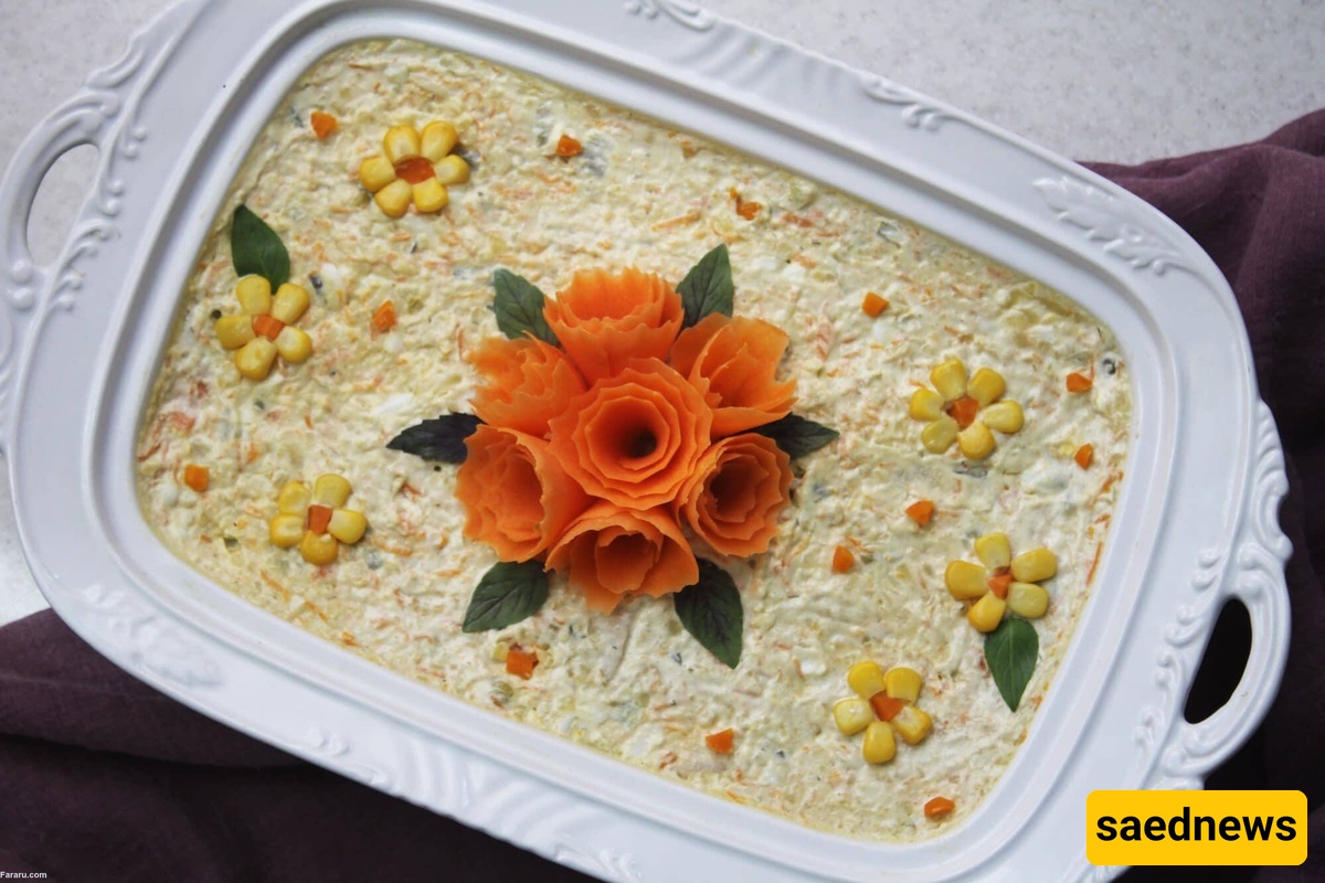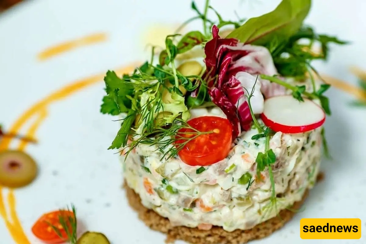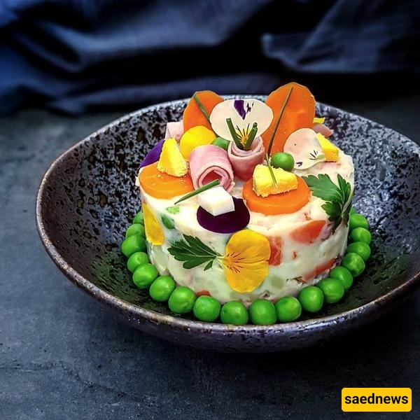 According to Saed News’ culinary section, one of the most popular salads served at parties, birthdays, and get-togethers is Salad Olivieh. Made from a mix of potatoes, chicken or ham, peas, carrots, and pickles, this versatile dish can be enjoyed both as a main course or an appetizer.