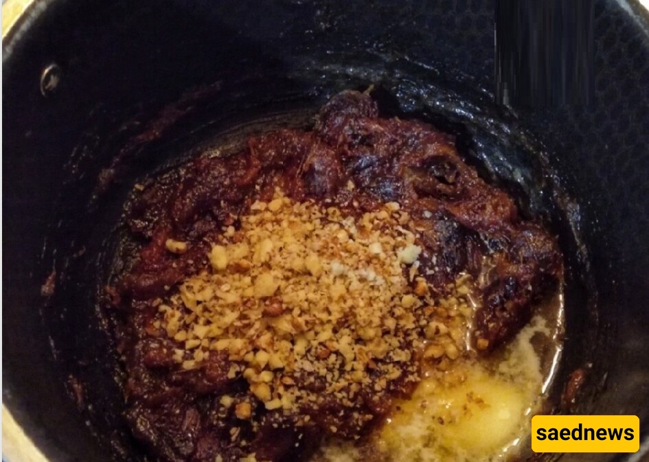 Finally, transfer the dish to a serving plate and garnish with sesame seeds and chopped walnuts. Serve warm with fresh bread.