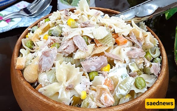 According to the cooking section of the Saed News news service, macaroni salad is one of the most popular Iranian party salads, commonly served at gatherings and celebrations. Similar to Olivier salad, it can also be considered a complete meal due to ingredients such as ham, mayonnaise, and vegetables.