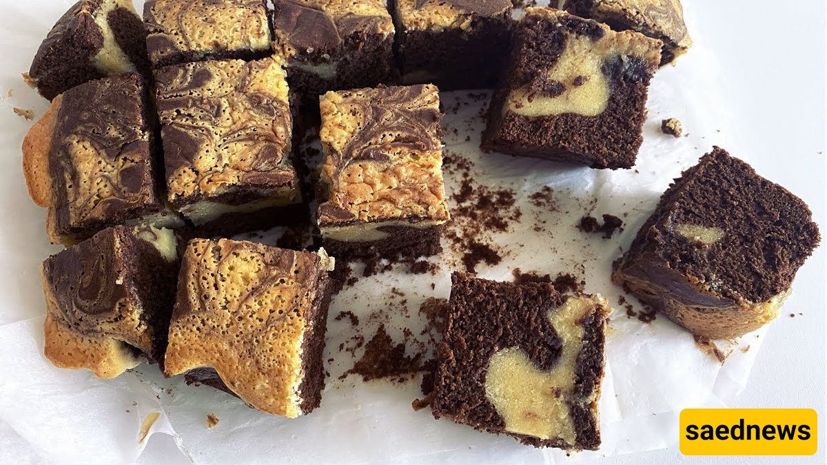 SAEDNEWS: Are you looking for a unique and exceptional chocolate cake recipe? Learn how to make Cheesecake Marbled Brownies with café-style techniques. This recipe is a combination of dense, chocolate-rich brownies and the smooth, creamy flavor of cheesecake, creating beautiful marbled patterns that are visually appealing and delicious.