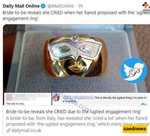 According to Saed News’ Art and Media Service, an Italian woman shared a photo of her unusually large engagement ring on Facebook, saying she felt hurt and even cried after being mocked by those around her.