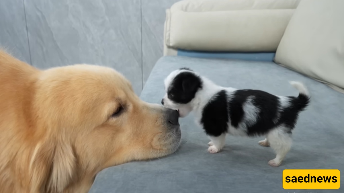 SAEDNEWS: Watch the adorable moments when a tiny puppy playfully attacks a giant dog, and enjoy their hilarious and heartwarming reactions.