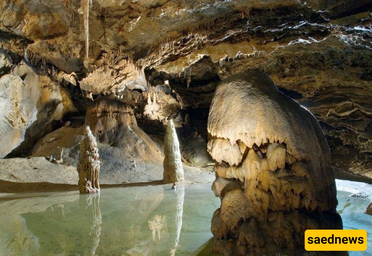 The marble stalactites inside create one of the most spectacular natural scenes, reminiscent at first glance of the Ali Sadr Cave in Hamedan. The cave has four openings, ongoing chemical activity, and is considered one of Iran’s active limestone caves.
