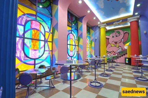 The interior is playful and colorful, with a family-friendly atmosphere. Donuts cost between $0.10 and $0.30, and can be served with hot cocoa. It is also part of the Grand Candy confectionery brand.